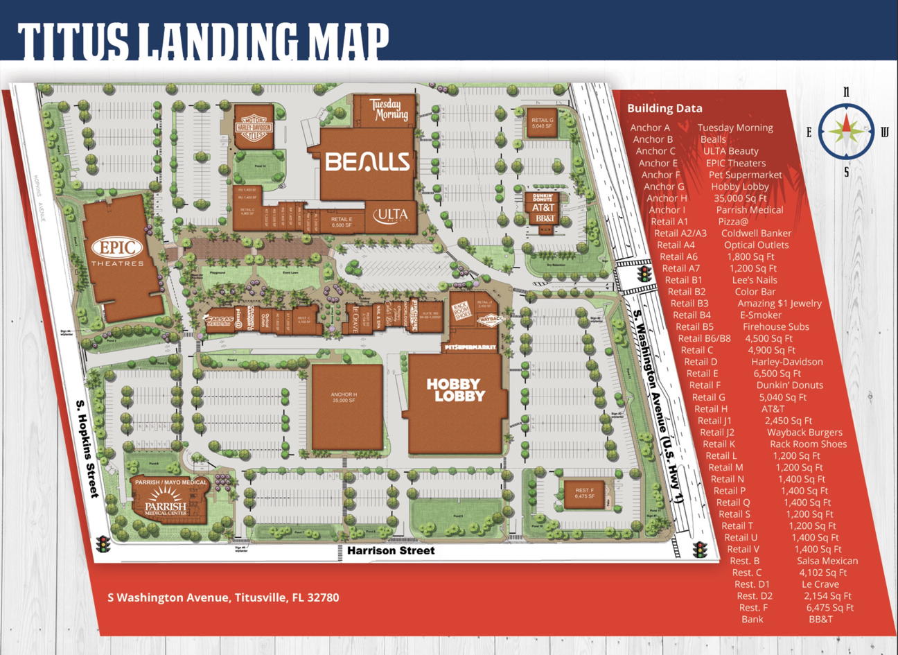 Titus Landing, with its lifestyle center concept, is the location for retail along the Space Coast in East Central Florida.