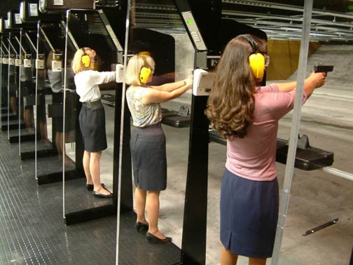 One of the nation's top indoor gun ranges is located in Titusville at 6350 Horizon Drive inside the American Police Hall of Fame & Museum which is a quarter of a mile east of US1 on SR405. This is a premier range that features 2 bays with 12 lanes in each. The range uses a combination of electronics and computerization, and it is fully air conditioned and it has HEPA air filtration. All firearms using pistol caliber ammunition are welcome, and modern sporting rifles using frangible ammunition may also be shot here. We have an extensive array of firearms available for rent, and we sell ammunition and targets. You may bring your own ammo and targets. We also have eye and ear protection available for rent.